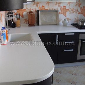 Стоимость изделия напрямую зависит от сложности конструкции, производителя акрилового камня и цвета. Для того, чтобы Вам легче было определиться с выбором материала, ниже мы приведем стоимость угловой кухонной столешницы, изготовленной из разных марок искусственного камня. Это поможет Вам сравнить цены и выбрать материал в рамках своего бюджета.