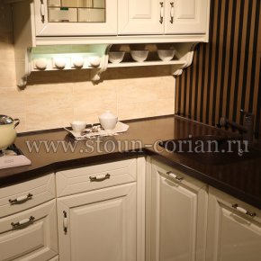 Стоимость изделия напрямую зависит от сложности конструкции, производителя акрилового камня и цвета. Для того, чтобы Вам легче было определиться с выбором материала, ниже мы приведем стоимость угловой кухонной столешницы, изготовленной из разных марок искусственного камня. Это поможет Вам сравнить цены и выбрать материал в рамках своего бюджета.